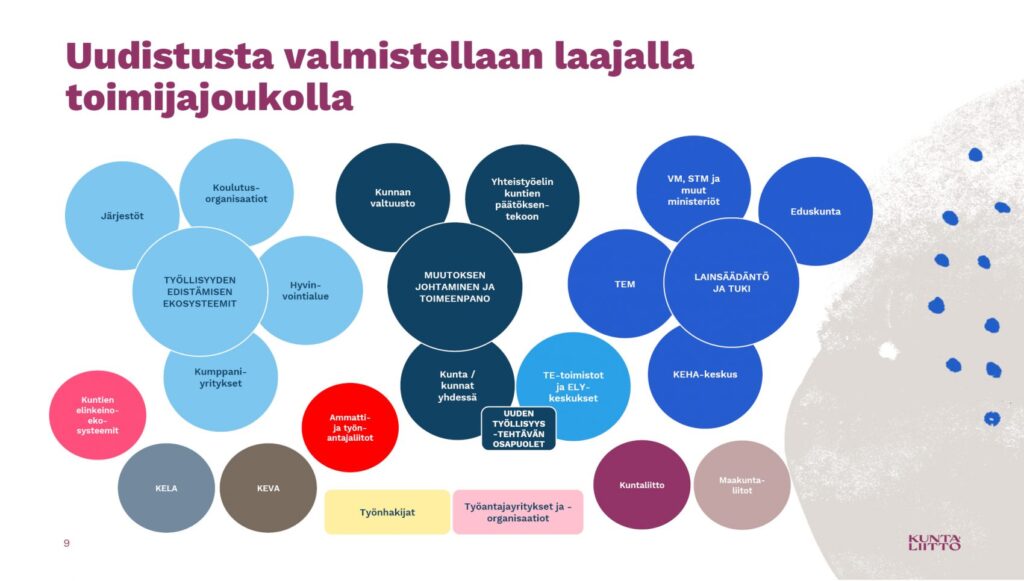 Uudistusta valmistellaan laajalla toimijajoukolla, jota Kuntaliiton kokoama kuva pyrkii avaamaan.
